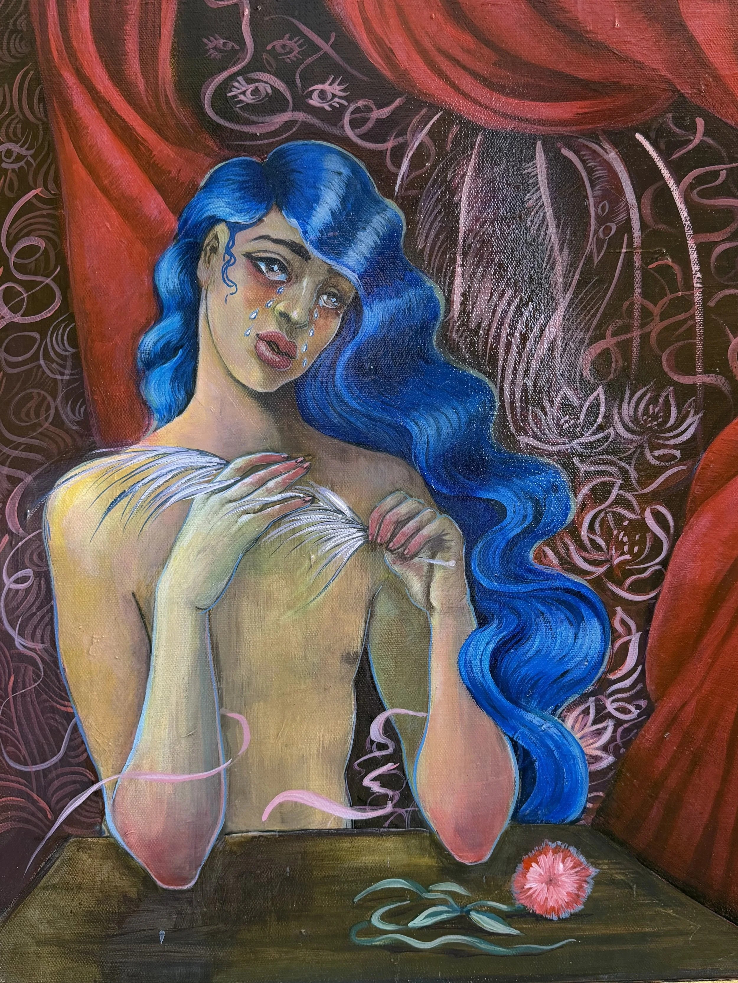Through these influences, the work explores themes of queerness, faith, transformation, repression, devotion, and awakening. Saints, martyrs, mystics, lovers, and mythic figures appear as guides through the human psyche. Their stories mirror modern struggles with identity, longing, anxiety, and the search for transcendence.